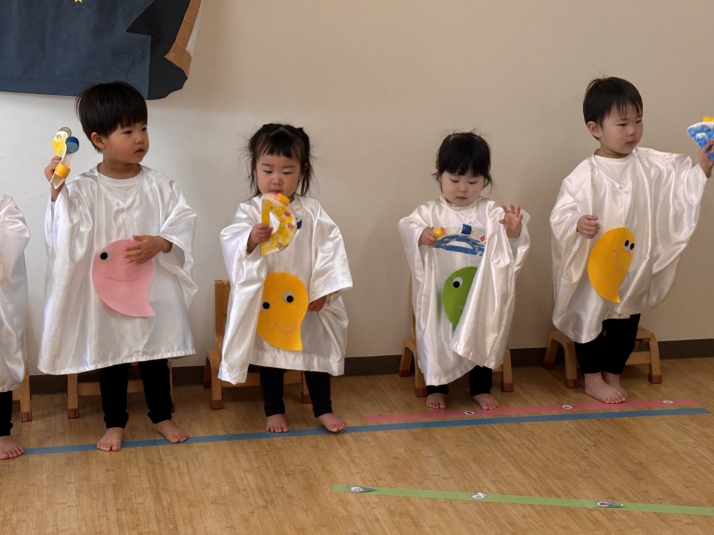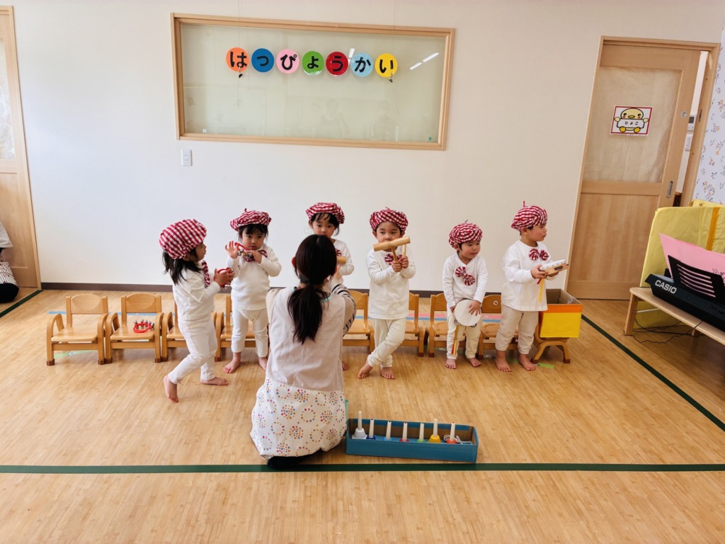 うさぎ組さんは、楽器演奏に加え、ハンドベル奏にもチャレンジしました。ハンドベルの綺麗な音や可愛らしいみんなの楽しそうな歌声がお部屋中に響き渡りました✨